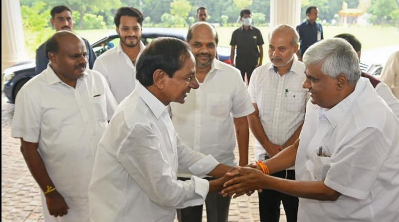 ടിആർഎസ് അധ്യക്ഷനും തെലങ്കാന മുഖ്യമന്ത്രിയുമായ കെ. ചന്ദ്രശേഖർ റാവു തെലങ്കാന ഭവനിൽ ആരംഭിക്കുന്ന പുതിയ ദേശീയ പാർട്ടി ബിആർഎസിന് (ഭാരതീയ/ഭാരത് രാഷ്ട്ര സമിതി) പിന്തുണ നൽകുന്നതിനായി ജെഡിഎസ് നേതാവും കർണാടക മുൻ മുഖ്യമന്ത്രിയുമായ എച്ച്.ഡി. കുമാരസ്വാമി ബുധനാഴ്ച നഗരത്തിലെത്തി. അഖിലേഷ് യാദവ് (സമാജ്വാദി പാർട്ടി), തേജസ്വി യാദവ് (രാഷ്ട്രീയ ജനതാദൾ) തുടങ്ങിയ പ്രാദേശിക പാർട്ടികളുടെ നേതാക്കളെ റാവു ക്ഷണിച്ചിട്ടുണ്ടെങ്കിലും കുമാരസ്വാമി ഒഴികെ മറ്റാരും ചന്ദ്രശേഖര് റാവുവിന് പിന്തുണ പ്രഖ്യാപിച്ചിട്ടില്ല.