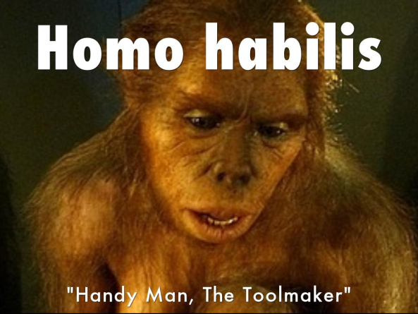 ഏകദേശം 2.31 ദശലക്ഷം വർഷങ്ങൾക്ക് മുമ്പ് മുതൽ 1.65 ദശലക്ഷം വർഷങ്ങൾക്ക് മുമ്പ് വരെ ജീവിച്ച ആദ്യകാല മനുഷ്യ വർഗ്ഗമാണ് ഹോമോ ഹാബിലിസ് (“ഹോമോ” ജനുസ്സിൽ ഉള്ളത്). ഓസ്ട്രലോപിത്തേക്കസിൽ നിന്നാണ് ഹോമോ പരിണമിച്ചതെന്ന് ഇപ്പോൾ ഏറെക്കുറെ അംഗീകരിക്കപ്പെട്ടിട്ടുണ്ടെങ്കിലും, ഈ പിളർപ്പിന്റെ സമയവും സ്ഥാനവും ഏറെ ചർച്ച ചെയ്യപ്പെട്ടിട്ടുണ്ട്. ഉപ-സഹാറൻ ആഫ്രിക്കയുടെ ചില ഭാഗങ്ങളിലും തെക്ക്, കിഴക്കൻ ആഫ്രിക്കയും ആയിരുന്നു ആവാസ കേന്ദ്രം. ഓസ്ട്രലോപിത്തേക്കസുമായി താരതമ്യം ചെയ്യുമ്പോൾ അവയുടെ രൂപം കൂടുതൽ മനുഷ്യ സമാനവും മുഖം കൂടുതൽ വൃത്താകൃതിയിലുള്ളതുമായിരുന്നു, പക്ഷേ അവ ശരാശരി 100-120 സെന്റീമീറ്റർ (3 അടി 3 ഇഞ്ച് – 3 അടി 11 ഇഞ്ച്) ഉയരവും 20-37 കിലോഗ്രാം (44-82 പൗണ്ട്) ഭാരവും ) ഭാരമുണ്ടായിരുന്ന ഇവർ ആധുനിക മനുഷ്യരേക്കാൾ ചെറുതായിരുന്നു. ആപേക്ഷിക ആണിന്റെയും പെണ്ണിന്റെയും വലുപ്പം കൃത്യമായി അറിയില്ലെങ്കിലും, ആദ്യകാല ഹോമിനിനുകൾ കട്ടിയുള്ള മുടിയുള്ളതും സ്ത്രീകളേക്കാൾ വളരെ വലുതായ പുരുഷന്മാരുമായി ലൈംഗിക ദ്വിരൂപത അടയാളപ്പെടുത്തിയതുമായി പുനർനിർമ്മിക്കപ്പെടുന്നു. കൂടാതെ, ഫോസിലുകളോടൊപ്പം ലളിതമായ കല്ലുപകരണങ്ങളും കണ്ടെത്തി. ഹോമോ ഹാബിലിസിന്റെ ഈ സ്വഭാവസവിശേഷതകളെല്ലാം എച്ച്. ഇറക്റ്റസിന്റെയും പിന്നീടുള്ള മനുഷ്യരുടെയും ശരീരഘടനയെയും പെരുമാറ്റത്തെയും മുൻരൂപമായി കണക്കാക്കുന്നു. മനുഷ്യസമാനമായ കാൽ, കൈയെല്ലുകൾ എന്നിവ ആർജിച്ചതിനാൽ, വസ്തുക്കളെ കൃത്യതയോടെ കൈകാര്യം ചെയ്യാനുള്ള കഴിവ് ഹോമോ ഹാബിലിസിന് ഉണ്ടായിരുന്നതായി കരുതപ്പെടുന്നു. അതിനാൽ ഈ ഇനത്തിനെ ഹോമോ ഹാബിലിസ്, അല്ലെങ്കിൽ “പ്രാപ്തിയുള്ള മനുഷ്യൻ അഥവ ഹാൻഡി മാൻ.” എന്ന് വിളിക്കപ്പെടുന്നു