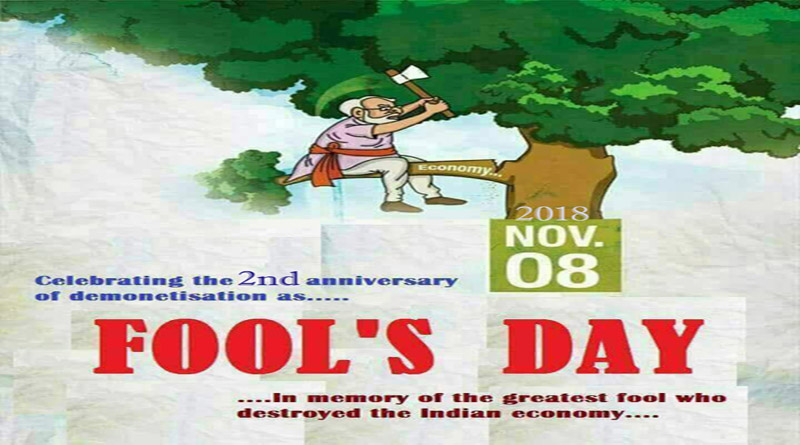 ജനദ്രോഹ ദിനം ആണ് നവംബർ 8, വിഡ്ഢിത്തം അല്ല, അത്ഒരു സങ്കടിത കൊള്ളായായിരുന്നു. കോൺഗ്രസ് അടക്കം മറ്റു രാഷ്ട്രീയ പാർട്ടികളുടെ സാമ്പത്തിക അടിത്തറ ഇല്ലാതാക്കുക എന്നതായിരുന്നു ആത്യന്തിക ലക്ഷ്യo.