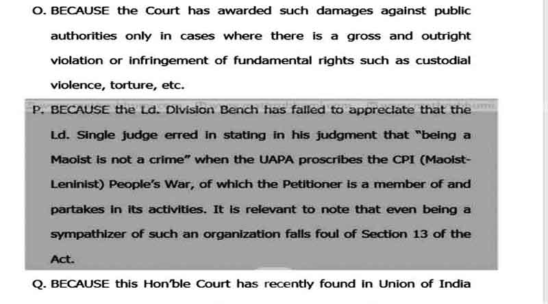 മാവോവാദി ആണെന്ന് ആരോപിച്ച് തന്നെ വിവസ്ത്രനാക്കി പരിശോധിക്കുകയും അറസ്റ്റ് ചെയ്യുകയും ചെയ്ത പോലീസ് ഉദ്യോഗസ്ഥര്ക്ക് എതിരെ നടപടി ആവശ്യപ്പെട്ട് ശ്യാം ബാലകൃഷ്ണന് കേരള ഹൈകോടതിയെ സമീപിച്ചിരുന്നു. ഈ ഹര്ജിയില് തീര്പ്പു കല്പ്പിച്ചുകൊണ്ട് ഒരാള് മാവോ ചിന്താഗതിക്കാരനാകുന്നതില് തെറ്റില്ലന്നും ഏത് ആശങ്ങളെ സ്വീകരിക്കുവാന് ഒരു പൗരന് അവകാശമുണ്ടെന്നും ചൂണ്ടികാട്ടി ബാലകൃഷ്ണന് ഒരുലക്ഷം രൂപ നഷ്ടപരിഹാരം നല്കുവാനും ഹൈക്കോടതി സിംഗിള് ബെഞ്ച് വിധിച്ചിരുന്നു. ഹൈക്കോടതി സിംഗിള് ബെഞ്ച് ഉത്തരവിനെതിരെ സംസ്ഥാന സര്ക്കാര് നല്കിയ അപ്പീല് ചീഫ് ജസ്റ്റിസ് ഋഷികേശ് റോയ്, ജസ്റ്റിസ് എ കെ ജയശങ്കര് നമ്പ്യാര് എന്നിവര് അടങ്ങിയ ഡിവിഷന് ബഞ്ചും തള്ളി. ഇതിനെതിരെ പിണറായി സര്ക്കാര് സുപ്രീംകോടതിയില് നല്കിയ അപ്പീലിലാണ്. യു.എ.പി.എ നിയമത്തിലെ 13-ം വകുപ്പ് പ്രകാരം മാവോവാദി അനുഭാവികള്ക്കെതിരെ പോലും കേസെടുക്കാന് അനുമതിഉണ്ടെന്ന വിചിത്ര വാദവുമായി പിണറായി സര്ക്കാര് സുപ്രീം കോടതിയെ സമീപിച്ചിരിക്കുന്നത്.