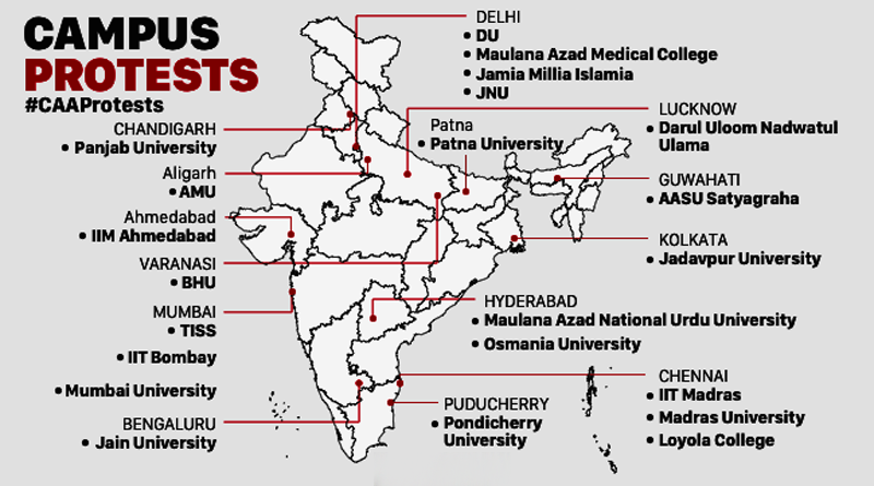 ഡല്ഹിയില് മുന് ജെ.എന്.യു വിദ്യാര്ത്ഥി യൂണിയന് നേതാവ് കനയ്യ കുമാര് ജാമിഅ മില്ലിയ്യ വിദ്യാര്ത്ഥികള് നടത്തുന്ന പ്രതിഷേധത്തിന്റെ ഭാഗമായി. മുസ്ലിംകള്ക്കു വേണ്ടി മാത്രമല്ല, മൊത്തം രാജ്യത്തെ സംരക്ഷിക്കാനുള്ള പോരാട്ടമാണ് ഇതെന്ന് കനയ്യ പറഞ്ഞു.യു.പിയിലെ അസംഗഡില് അടക്കം നിയമത്തിനെതിരെ പ്രതിഷേധം ശക്തമാണ്. തമിള്നാട്ടിലും പ്രതിക്ഷേധം കനക്കുകയാണ്. വിദ്യാര്ത്ഥി പ്രക്ഷോഭത്തിന് പിന്തുണയുമായി മദ്രാസ് സര്വ്വകലാശാലയില് എത്തിയ കമല്ഹാസനെ കാന്പസില് പ്രവേശിക്കുവാന് പോലീസ് അനുവദിച്ചില്ല. അതേസമയം, പ്രക്ഷോഭം കനത്തു നിന്ന പശ്ചിമബംഗാള് സാധാരണ നിലയിലേക്ക് തിരിച്ചു വരികയാണ്. ചില മേഖലകളില് ഇന്റര്നെറ്റ് നിയന്ത്രണം എടുത്തു കളഞ്ഞിട്ടുണ്ട്. മുര്ഷിദാബാദ്, മാല്ഡ, ഉത്തര ദിനാജ്പൂര് തുടങ്ങിയ സ്ഥലങ്ങളില് ഇന്റര്നെറ്റ് ഭാഗികമായി പുനഃസ്ഥാപിച്ചു. ഹൗറയില് നിയന്ത്രണം തുടരുകയാണ്.