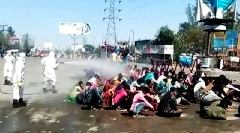 യുപിയിലെ യോഗി ഭരണകൂടം പാര്ശ്വ വത്കരിക്കപ്പെട്ടവരെ മനുഷ്യരായി പോലും കാണുന്നില്ലന്നതിന് മറ്റൊരു തെളിവ്. അന്യസംസ്ഥാനങ്ങളിൽനിന്ന് സ്വന്തം നാട്ടിൽ മടങ്ങിയെത്തിയ തൊഴിലാളികളെ നടുറോഡില് കൂട്ടമായി ഇരുത്തി അണുനാശിനി തളിച്ചാണ് യോഗി ഗവര്മ്മെന്റ് തങ്ങളുടെ മനുഷ്യത്വമില്ലായ്മ ഒരിക്കല് കൂടി തെളിയിച്ചിരിക്കുന്നത്. ഉത്തർപ്രദേശിലെ ബറേലിയിലാണ് സ്ത്രീകളും കുട്ടികളും ഉൾപ്പെടുന്ന സംഘത്തെ കൂട്ടമായി റോഡിൽ നിരത്തിയിരുത്തിയശേഷം അണുനാശിനി തളിച്ചത്. പോലീസിന്റെ സഹായത്തോടെയാണ് കൂട്ടമായുള്ള ഈ അണുനശീകരണ പ്രയോഗം ആരോഗ്യ വകുപ്പ് പ്രവര്ത്തകര് നടത്തിയത്. കുട്ടികള് കണ്ണു പൊത്തിപ്പിടിക്കണമെന്നും മൂക്കും വായും മൂടണമെന്നും ആരോഗ്യ വകുപ്പ് പ്രവര്ത്തകര് നിര്ദ്ദേശിക്കുന്നുണ്ടായിരുന്നു. കൂട്ടമായുള്ള ഈ അണു നാശിനി പ്രയയോഗത്തിനു ശേഷം പലര്ക്കും ചൊറിച്ചിലും മറ്റ് ദേഹാശ്വാസ്ത്യവും ഉണ്ടായതായും റിപ്പോര്ട്ട് ചെയ്യപ്പെടുന്നു.